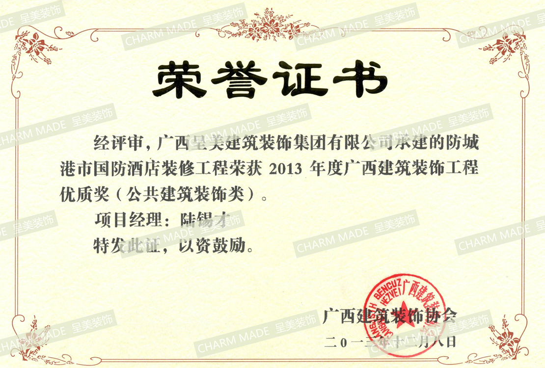 2013年 建筑工程優(yōu)質獎 (國防酒店項目)